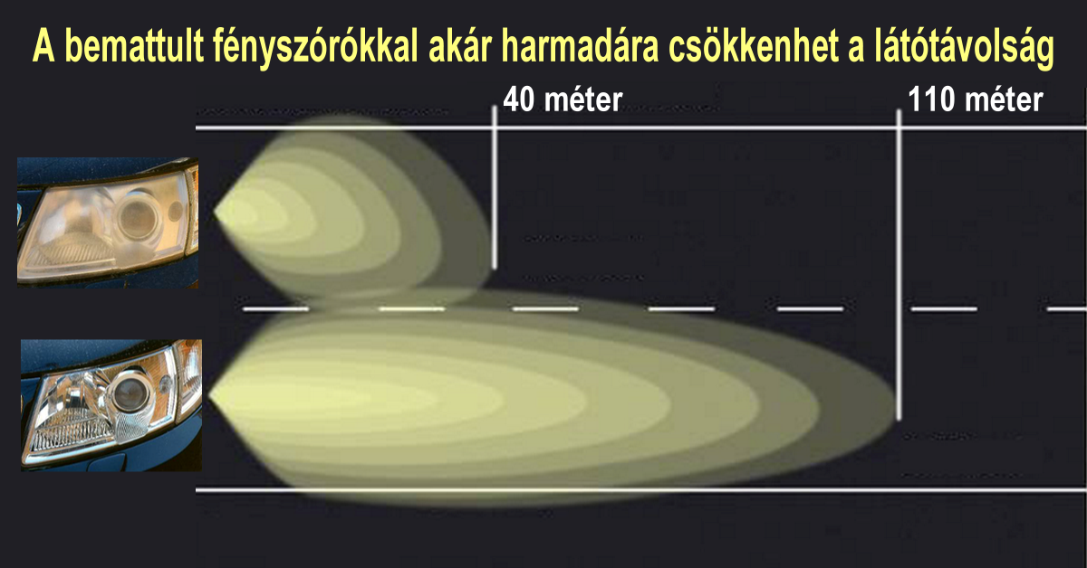 A mai gépkocsik polikarbonát fényszórói az évek során befakulhatnak, ezzel az éjszakai látási viszonyok akár 60-80%-kal is rosszabbá válhatnak.